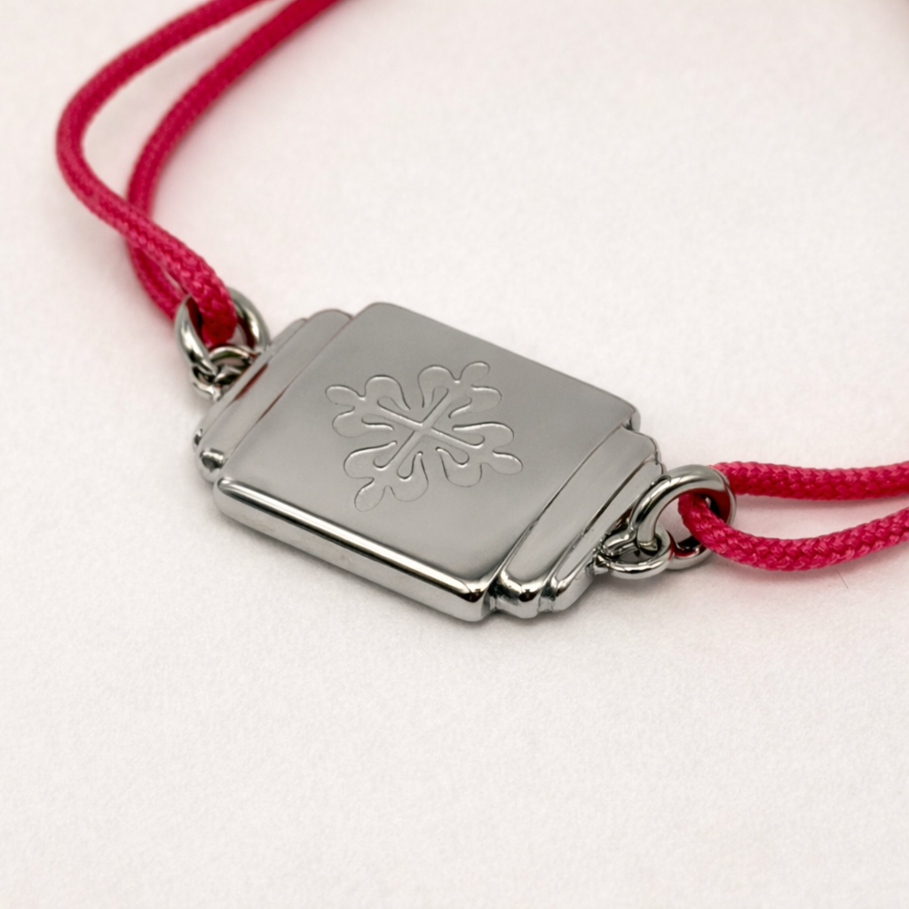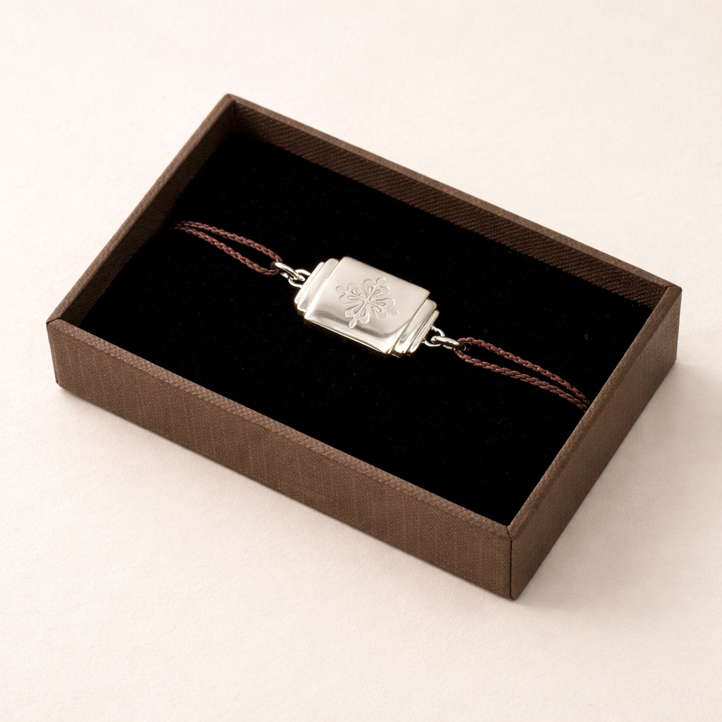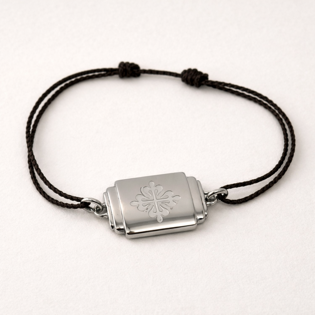 Understated and instantly recognizable, this Patek Philippe Calatrava Crest bracelet is a refined accessory originally produced as an authorized dealer or VIP gift, never offered for retail sale. Crafted in sterling silver with the iconic Calatrava cross emblem, it reflects the quiet elegance and heritage associated with Patek Philippe.