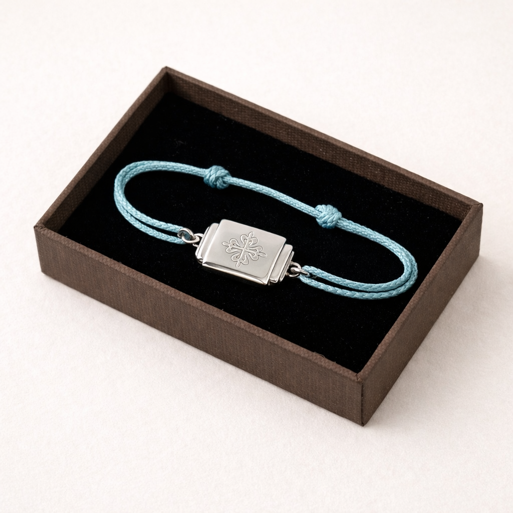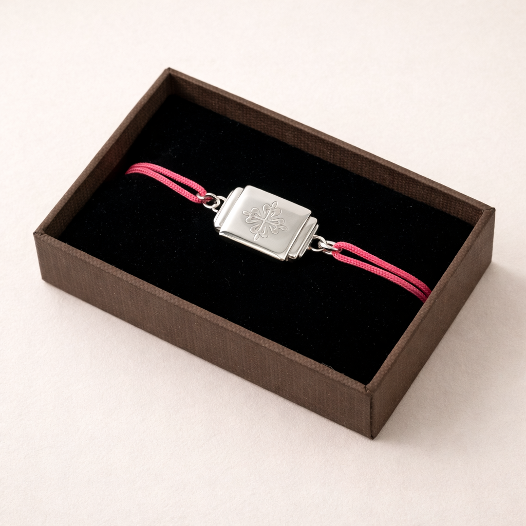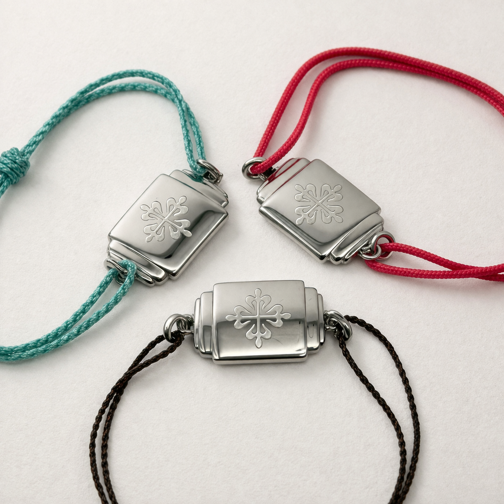 Understated and instantly recognizable, this Patek Philippe Calatrava Crest bracelet is a refined accessory originally produced as an authorized dealer or VIP gift, never offered for retail sale. Crafted in sterling silver with the iconic Calatrava cross emblem, it reflects the quiet elegance and heritage associated with Patek Philippe.